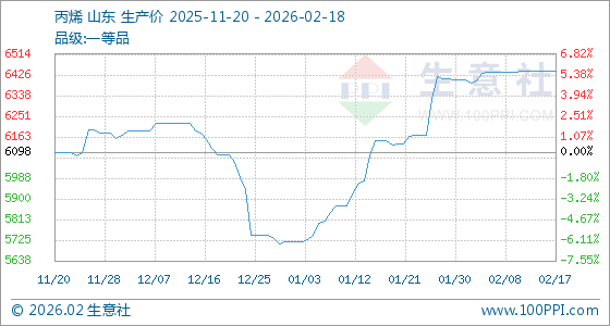 2月18日,生意社丙烯基准价为6441.00元/吨,与本月初(6404.33元/吨)相比,上涨了0.57%。