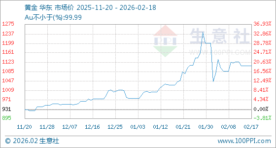 2月18日,生意社黄金基准价为1107.47元/克,与本月初(1199.84元/克)相比,下降了7.7%。