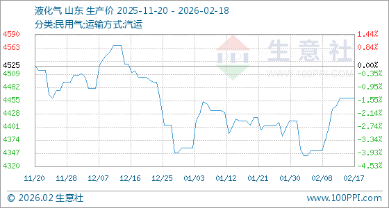 2月18日,生意社液化气基准价为4460.00元/吨,与本月初(4412.50元/吨)相比,上涨了1.08%。