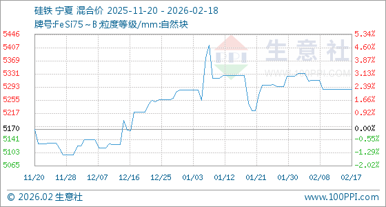 2月18日,生意社硅铁基准价为5287.14元/吨,与本月初(5324.29元/吨)相比,下降了0.7%。