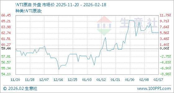 2月18日,生意社WTI原油基准价为62.84美元/桶,与本月初(65.42美元/桶)相比,下降了3.94%。
