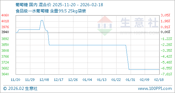 2月18日,生意社葡萄糖基准价为3675.00元/吨,与本月初持平。