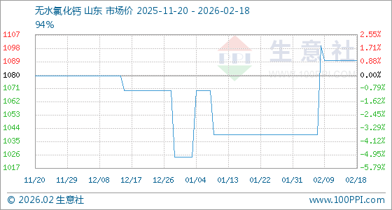 2月18日,生意社无水氯化钙基准价为1090.00元/吨,与本月初(1040.00元/吨)相比,上涨了4.81%。