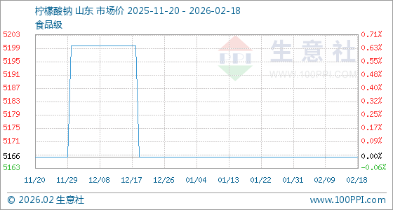 2月18日,生意社柠檬酸钠基准价为5166.67元/吨,与本月初持平。
