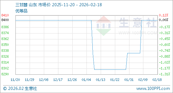 2月18日,生意社三甘醇基准价为8400.00元/吨,与本月初(8333.33元/吨)相比,上涨了0.80%。
