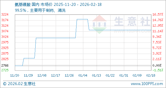 2月18日,生意社氨基磺酸基准价为3087.50元/吨,与本月初持平。