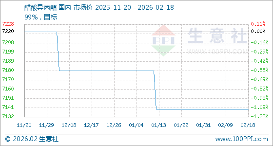 2月18日,生意社醋酸异丙酯基准价为7140.00元/吨,与本月初持平。