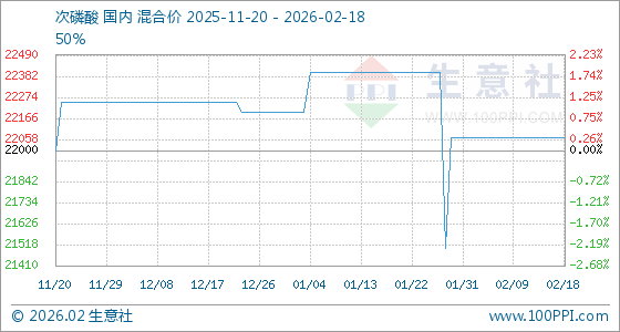 2月18日,生意社次磷酸基准价为22066.67元/吨,与本月初持平。