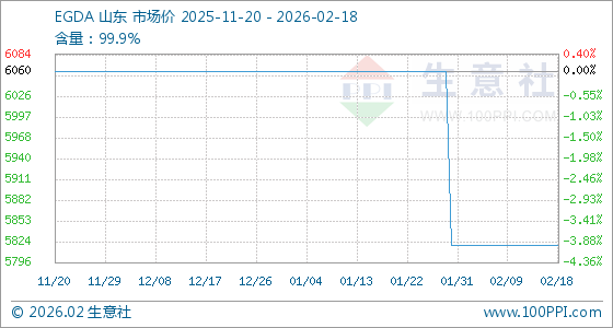 2月18日,生意社EGDA基准价为5820.00元/吨,与本月初持平。