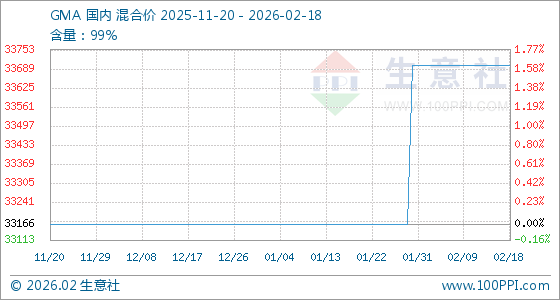 2月18日,生意社GMA基准价为33700.00元/吨,与本月初持平。