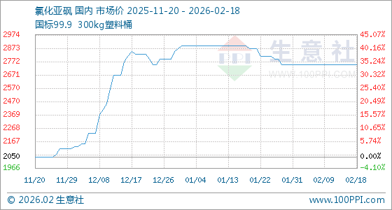 2月18日,生意社氯化亚砜基准价为2750.00元/吨,与本月初持平。