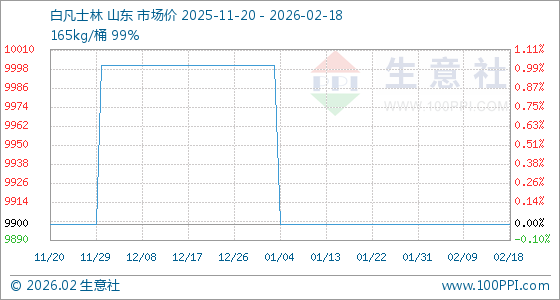 2月18日,生意社白凡士林基准价为9900.00元/吨,与本月初持平。