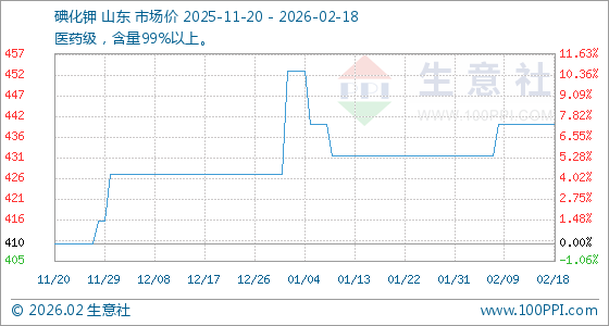 2月18日,生意社碘化钾基准价为440.00元/公斤,与本月初(432.00元/公斤)相比,上涨了1.85%。