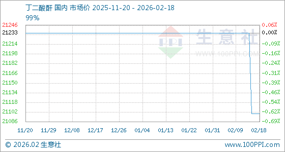 2月18日,生意社丁二酸酐基准价为21100.00元/吨,与本月初(21233.33元/吨)相比,下降了0.63%。
