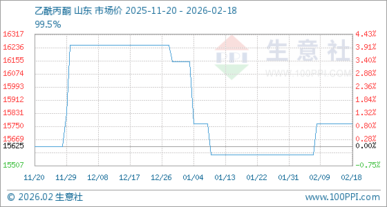 2月18日,生意社乙酰丙酮基准价为15766.67元/吨,与本月初(15575.00元/吨)相比,上涨了1.23%。