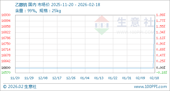 2月18日,生意社乙醇钠基准价为16600.00元/吨,与本月初持平。