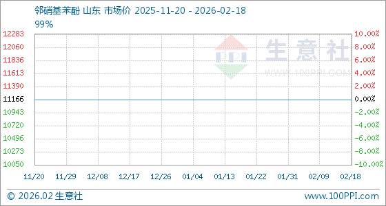 2月18日,生意社邻硝基苯酚基准价为11166.67元/吨,与本月初持平。