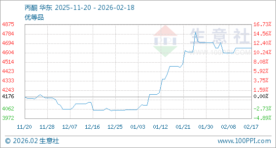 2月18日,生意社丙酮基准价为4650.00元/吨,与本月初(4700.00元/吨)相比,下降了1.06%。