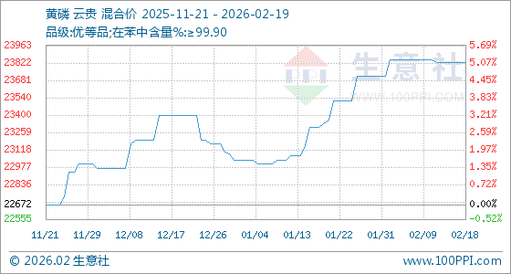 2月19日,生意社黄磷基准价为23829.33元/吨,与本月初(23712.67元/吨)相比,上涨了0.49%。