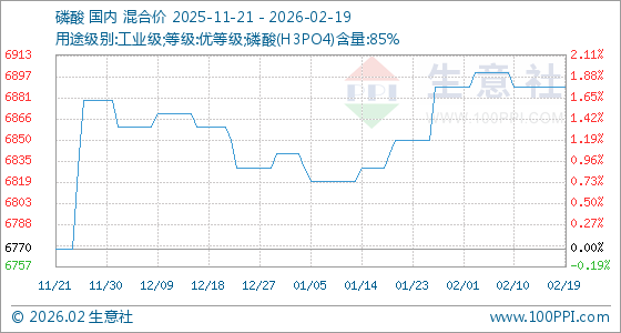 2月19日,生意社磷酸基准价为6890.00元/吨,与本月初持平。
