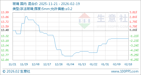 2月19日,生意社玻璃基准价为13.25元/平方米,与本月初(13.10元/平方米)相比,上涨了1.15%。