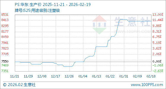 2月19日,生意社PS基准价为8400.00元/吨,与本月初(8433.33元/吨)相比,下降了0.4%。