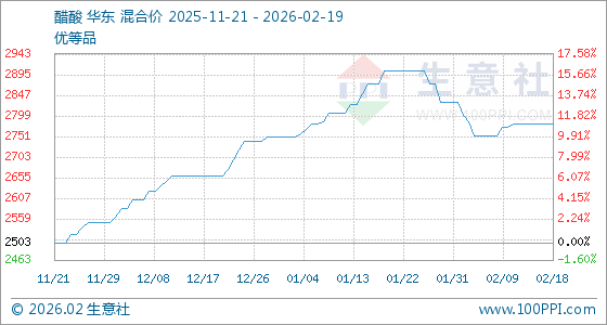 2月19日,生意社醋酸基准价为2780.00元/吨,与本月初(2830.00元/吨)相比,下降了1.77%。