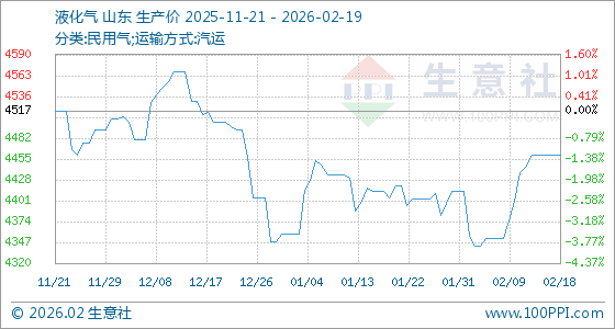 2月19日,生意社液化气基准价为4460.00元/吨,与本月初(4412.50元/吨)相比,上涨了1.08%。