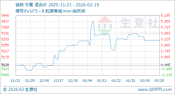 2月19日,生意社硅铁基准价为5287.14元/吨,与本月初(5324.29元/吨)相比,下降了0.7%。