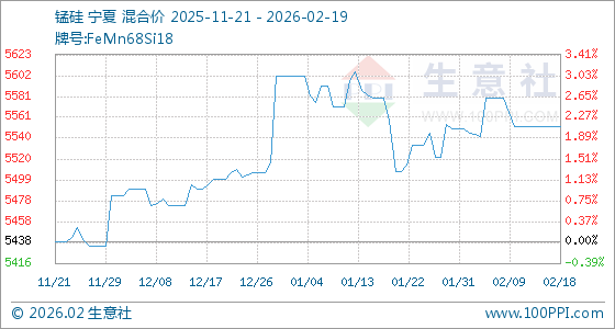 2月19日,生意社锰硅基准价为5552.00元/吨,与本月初(5550.00元/吨)相比,上涨了0.04%。