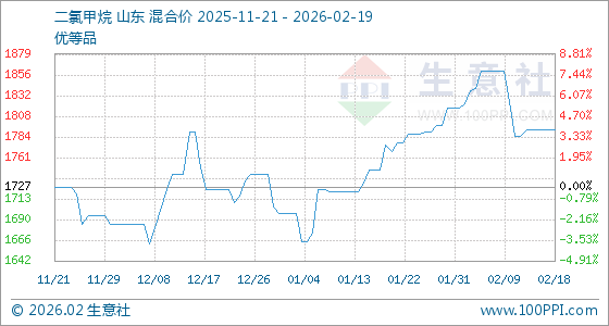 2月19日,生意社二氯甲烷基准价为1792.50元/吨,与本月初(1817.50元/吨)相比,下降了1.38%。