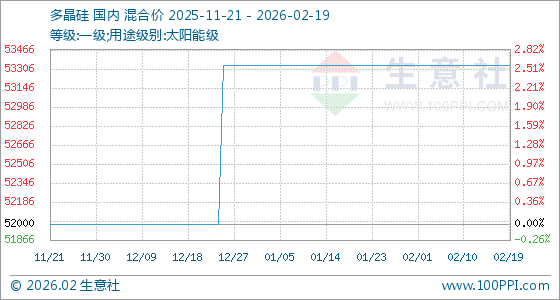2月19日,生意社多晶硅基准价为53333.33元/吨,与本月初持平。