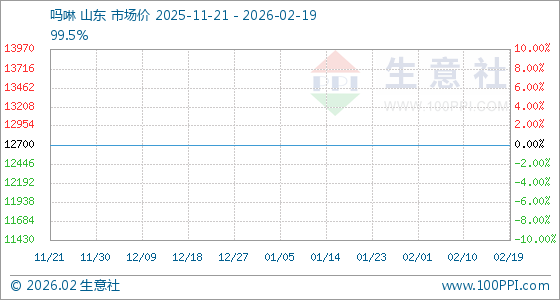 2月19日,生意社吗啉基准价为12700.00元/吨,与本月初持平。