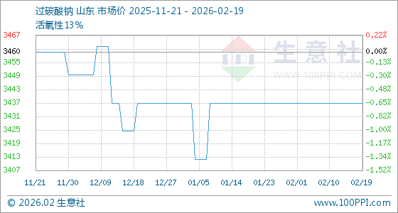 2月19日,生意社过碳酸钠基准价为3437.50元/吨,与本月初持平。