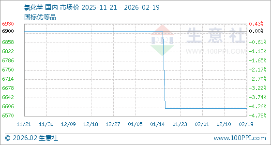 2月19日,生意社氯化苯基准价为6600.00元/吨,与本月初持平。