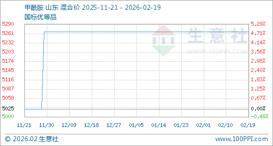 2月19日,生意社甲酰胺基准价为5266.67元/吨,与本月初持平。