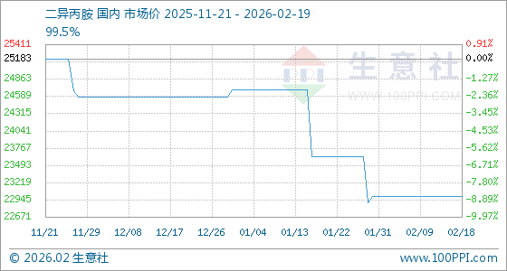 2月19日,生意社二异丙胺基准价为23000.00元/吨,与本月初持平。