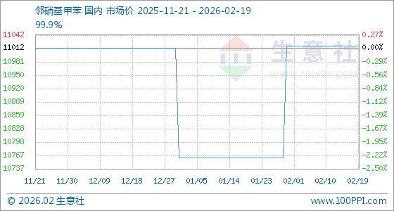 2月19日,生意社邻硝基甲苯基准价为11016.67元/吨,与本月初持平。