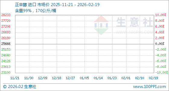 2月19日,生意社正辛醇基准价为25666.67元/吨,与本月初持平。