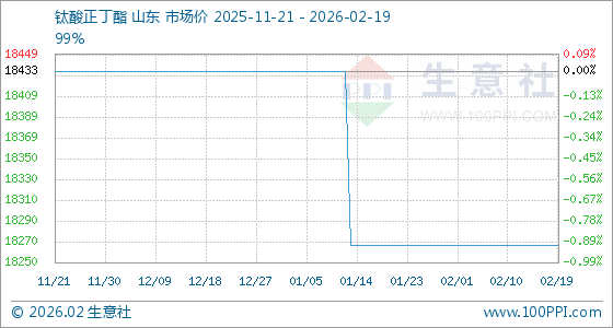 2月19日,生意社钛酸正丁酯基准价为18266.67元/吨,与本月初持平。