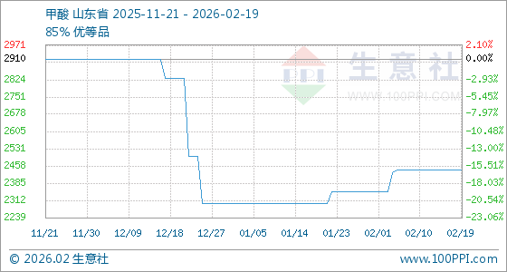 2月19日,生意社甲酸基准价为2440.00元/吨,与本月初(2350.00元/吨)相比,上涨了3.83%。