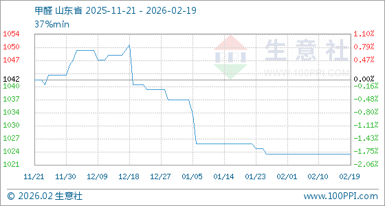 2月19日,生意社甲醛基准价为1023.75元/吨,与本月初持平。