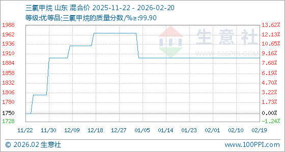 2月20日,生意社三氯甲烷基准价为1900.00元/吨,与本月初持平。