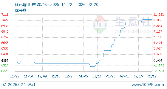 2月20日,生意社环己酮基准价为7037.50元/吨,与本月初(6900.00元/吨)相比,上涨了1.99%。