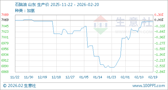 2月20日,生意社石脑油基准价为7063.33元/吨,与本月初(7000.00元/吨)相比,上涨了0.90%。
