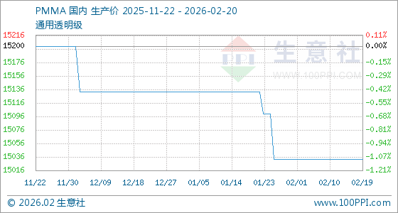 2月20日,生意社PMMA基准价为15033.33元/吨,与本月初持平。
