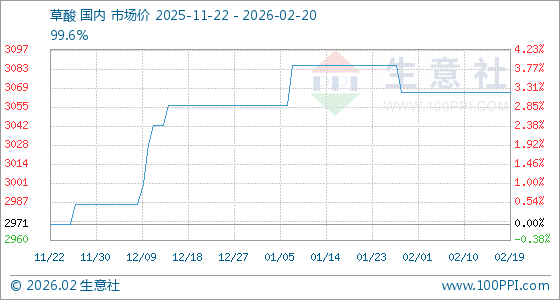 2月20日,生意社草酸基准价为3066.67元/吨,与本月初持平。