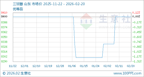 2月20日,生意社三甘醇基准价为8400.00元/吨,与本月初(8333.33元/吨)相比,上涨了0.80%。