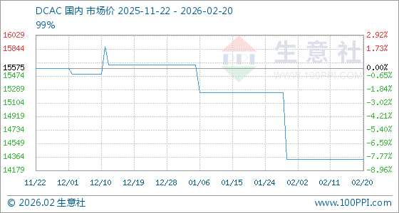 2月20日,生意社DCAC基准价为14333.33元/吨,与本月初持平。