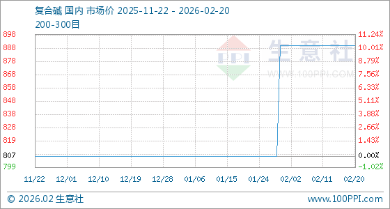 2月20日,生意社复合碱基准价为890.00元/吨,与本月初持平。